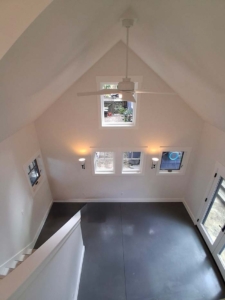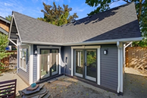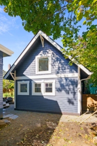 This project began with the careful removal of an existing garage to make way for a new workshop supporting the clients’ backyard farming business. Located in Portland’s historic Irvington district, the design had to meet strict review guidelines—integrating approved window styles and siding profiles so the structure feels authentic to its surroundings.