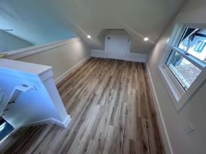 Concrete and luxury vinyl plank selected for resilience and easy maintenance.