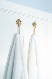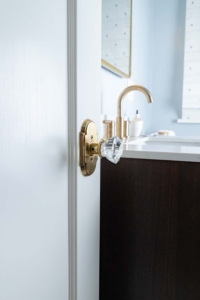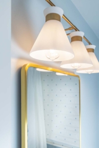 Original details like the laundry chute and vintage vent covers were carefully preserved and refreshed, ensuring the space feels lovingly evolved rather than newly imposed. The result is a small room with outsized personality—calming yet full of charm.