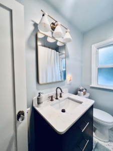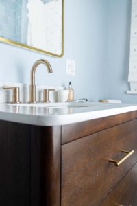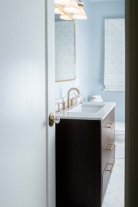 Thoughtful selections echo the client’s earlier kitchen remodel while staying true to the home.